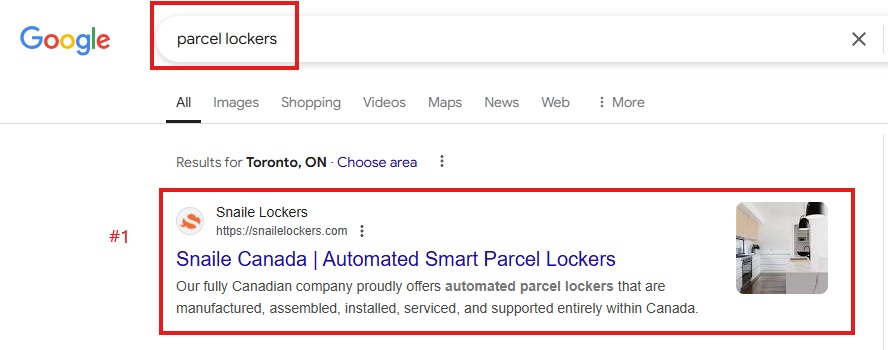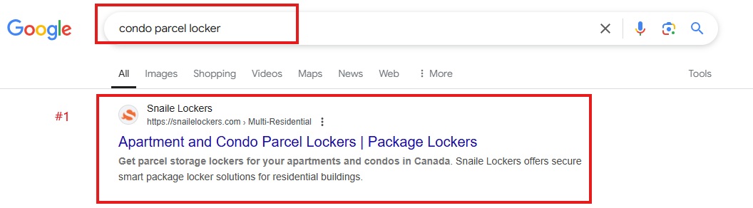 Keyword ranking at #1 "Condo Parcel Locker"