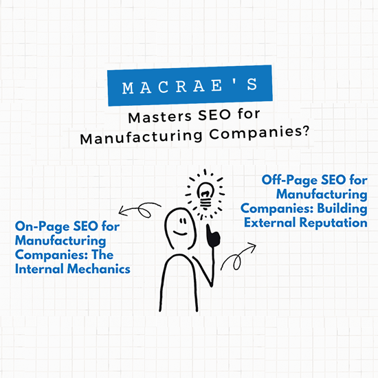 MacRAE’S SEO services for manufacturing companies ensure both these components work in harmony. By fine tuning your website’s internals and building a robust external reputation, we position your manufacturing business as an industry frontrunner.